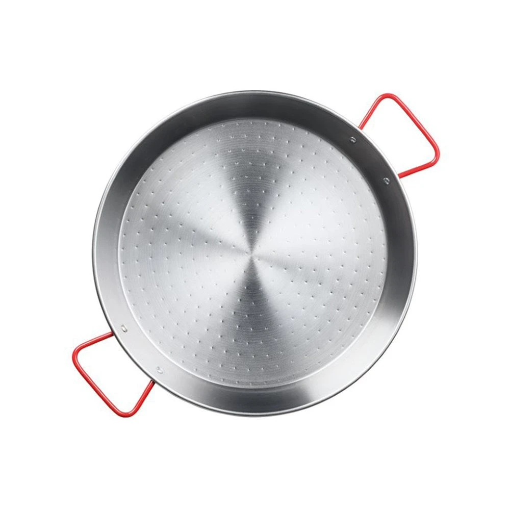 • This polished steel pan is perfect for creating paella's iconic crust on the base