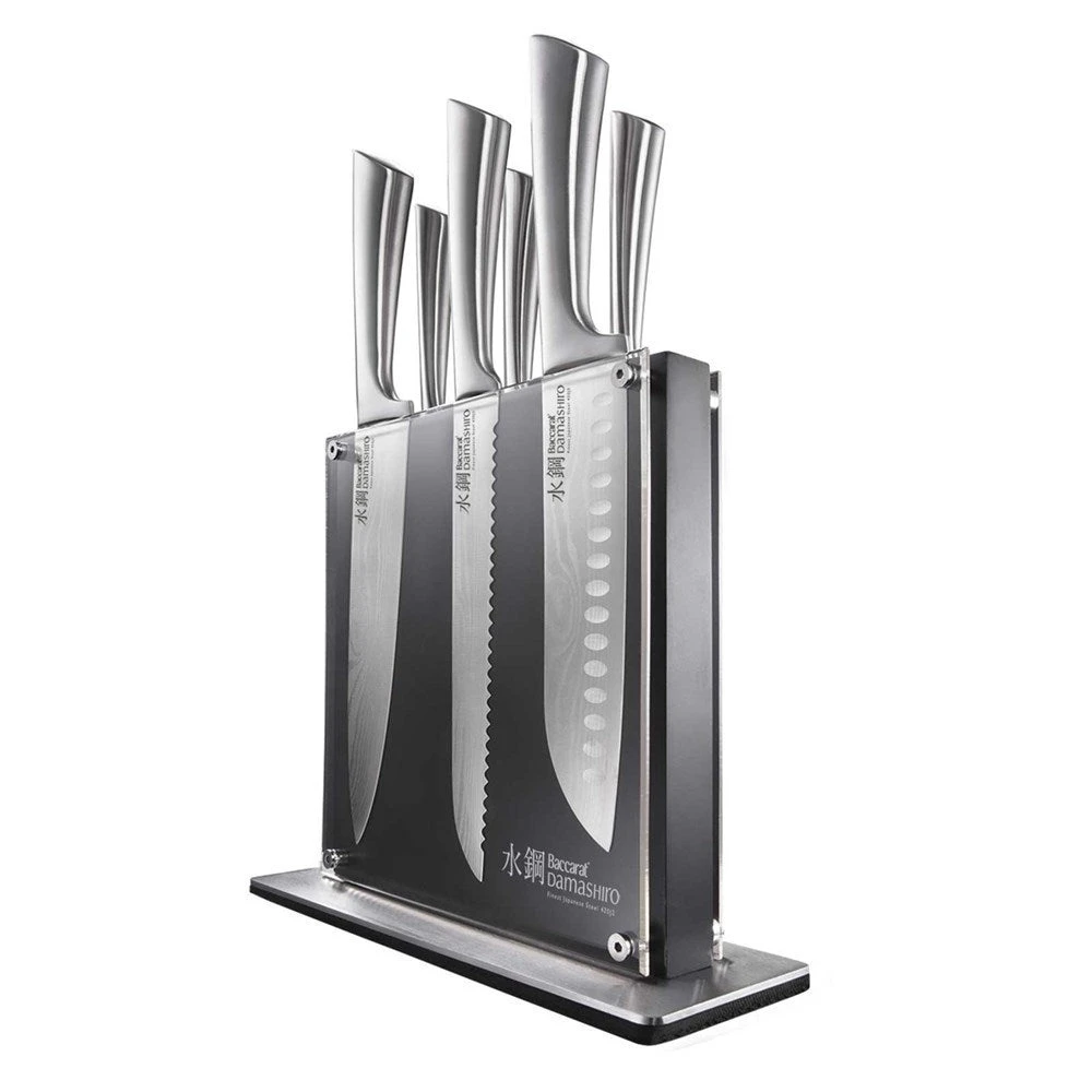 The Baccarat® Damashiro® 7 piece Knife Block features 6 essential Japanese blades. A stylish knife block showcases your blades and protects the sharpness of your knives.