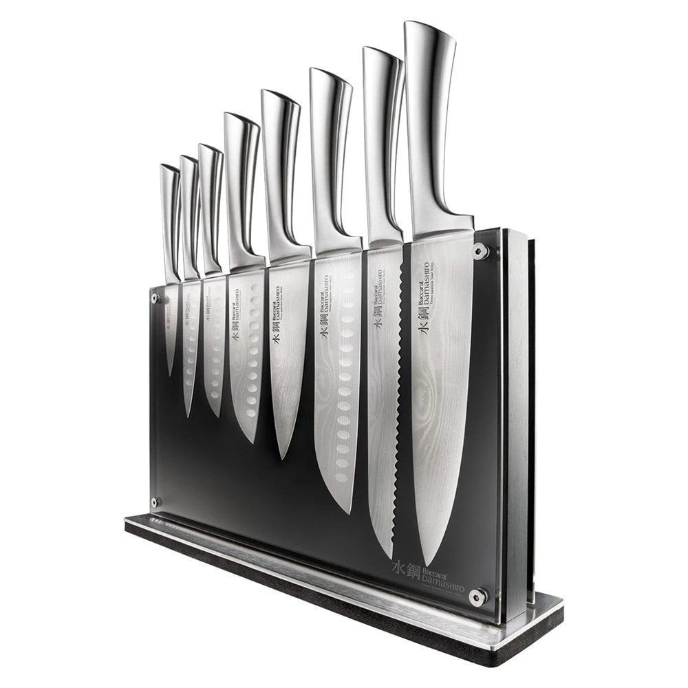 Experience the very best knife block set. The Baccarat® Damashiro® 9 Piece Nami Knife Block is guaranteed to better your everyday cooking experience. It’s Premium Japanese blades are crafted with traditional Japanese influence. Simply the Best.