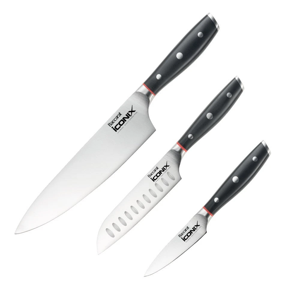 • The Baccarat® iconiX® 3 Piece Starter Knife Set includes: 1 x 20cm Chefs Knife ,1 x 12.5cm Santoku Knife and 1 x 9cm Paring Knife. The 3 essentials for any kitchen – be #1 in the kitchen for Cutting, Slicing, Chopping, Dicing, Mincing and so much more.