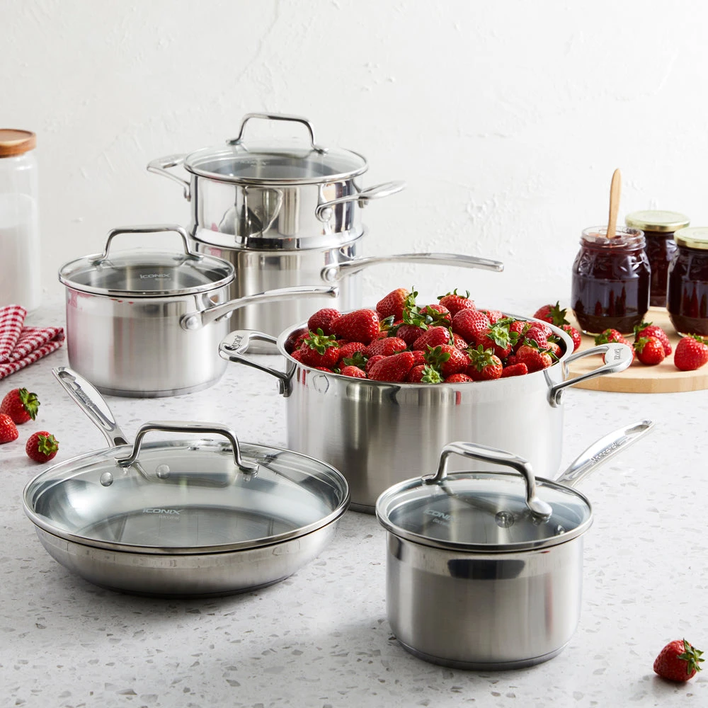 Simmer, saute and fry like a pro with the premium Baccarat IconiX 6 Piece Stainless Steel Cookware Set! Constructed from the highest quality stainless steel, this cookware set as a heavy 5mm impact bonded base that offers rapid heat transfer to cook your food evenly, eliminate hot spots and prevent burning. Comprising of a 1.2L saucepan with lid, 1.8L saucepan with lid, 2.5L saucepan with lid, 4.8L casserole with lid, a steamer insert and a frypan, this comprehensive set takes care of all your cooking needs! The saucepans and casserole come equipped with easy-view tempered glass lids that make monitoring your food while it cooks simple. Suitable for all cooktops including induction, the Baccarat IconiX 6 Piece Cookware Set is also oven safe and dishwasher friendly for your convenience. Introduce exceptional quality and performance to your kitchen with the Baccarat IconiX 6 Piece Stainless Steel Cookware Set!