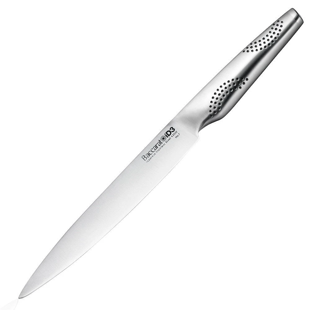 • The Baccarat® iD3® Carving Knife is great for carving thick slices of meats, fruits and vegetables. Narrower than a chefs knife and with a curved blade profile, it helps to follow contours and guide meat away from the bone. This knife allows for more precise cuts.