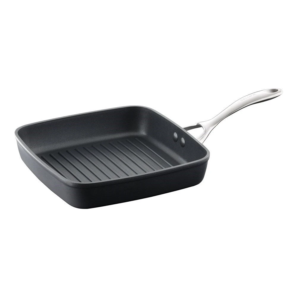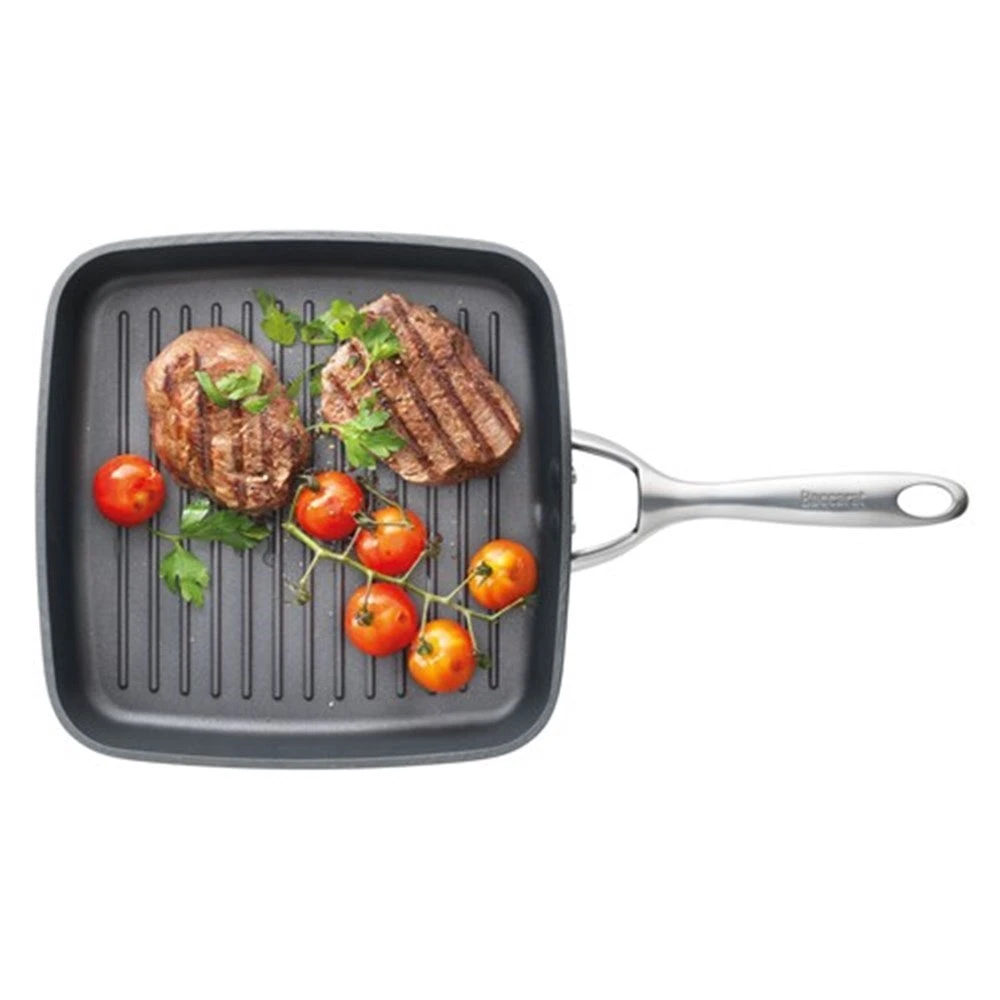 Get cooking with the Baccarat iD3 Hard Anodised Griddle 26cm. The pan has been hard anodised to create a super tough warp free surface and body, resulting in a pan that is twice as hard as stainless steel. The pan promotes rapid heat transfer and efficient heat distribution for even cooking, eliminating hot spots and burning in the pans interior corners. The interior and exterior features a tough TRI-TEC triple layer non-stick, providing quick easy cooking, long lasting food release and faster clean up. The TRI-TEC triple layer is perfect for low fat cooking as you can use less oil. The Baccarat iD3 Hard Anodised Griddle 26cm includes a magnetic stainless steel induction plate making the iD3 suitable for all cooktops. The pan offers the convenience of quick and easy clean up that literally rinses and wipes clean but is also dishwasher safe. Baccarat iD3 Hard Anodised cookware is guaranteed for a lifetime, so there is no better choice for a lifetime of creative home cooking.