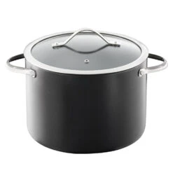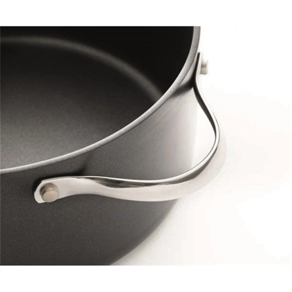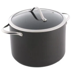 Get cooking with the Baccarat iD3 Hard Anodised Stockpot 24cm with Lid. This pot has been hard anodised to create a super tough warp free surface and body, resulting in a pan that is twice as hard as stainless steel. The pot promotes rapid heat transfer and efficient heat distribution for even cooking, eliminating hot spots and burning in the pot’s interior corners. The interior and exterior features a tough TRI-TEC triple layer non-stick coating, providing quick and easy cooking and faster clean up. The TRI-TEC triple layer is also perfect for low fat cooking, providing quick food release without the use of oils and fats. Baccarat iD3 Stockpot with Lid includes a magnetic stainless steel induction plate, making the iD3 suitable for all cooktops. The strong, generously sized handles are designed for superior strength and durability and stay cool to the touch for longer when on cooktops. The iD3 pot offers the convenience of quick and easy clean up that literally rinses and wipes clean but is also dishwasher safe. Baccarat iD3 Hard Anodised cookware is guaranteed for a lifetime, so there is no better choice for a lifetime of creative home cooking.