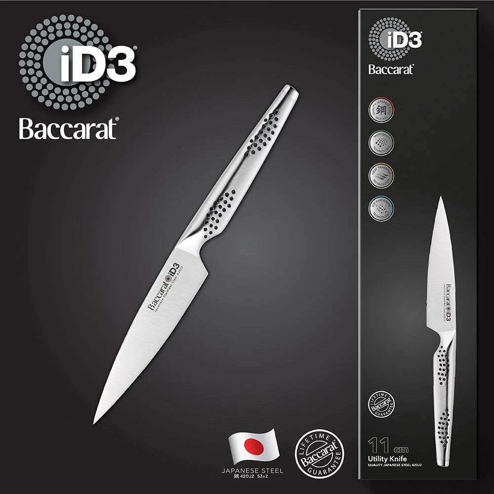 • The Baccarat® iD3® Utility knife is a medium-sized all purpose knife. Ideal for every-day essential kitchen functions such as cutting cheese, chopping fruit and vegetables, and slicing fish.