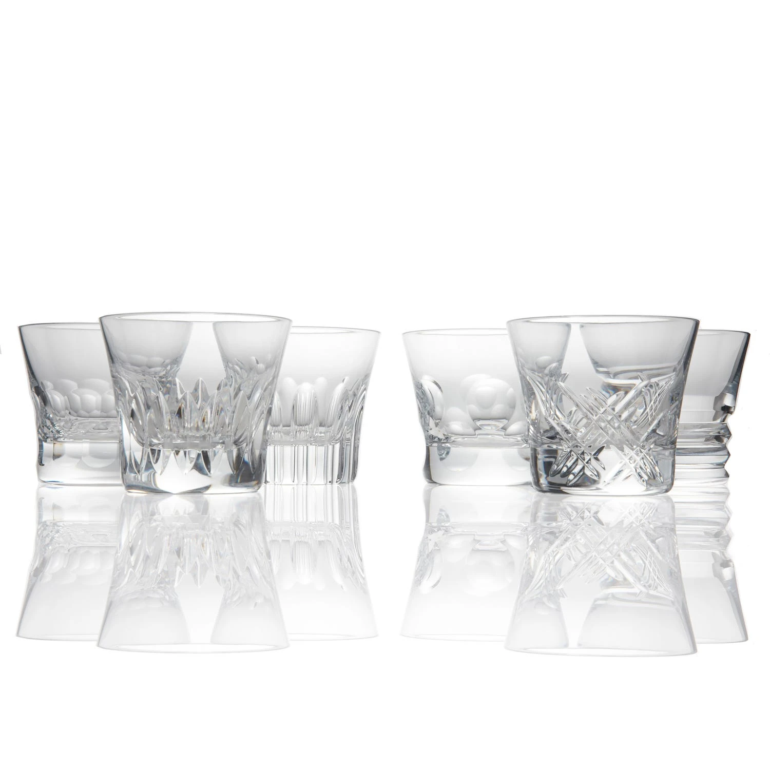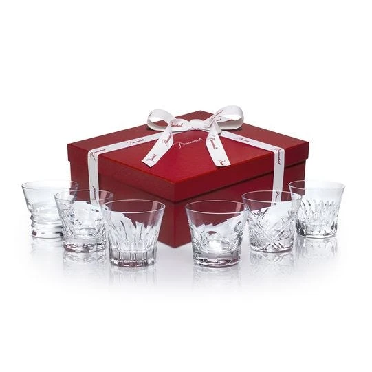Discover the Baccarat Everyday Set of Six assorted tumblers, a stunning collection of six perfectly crafted crystal glasses each, with a different creative pattern.