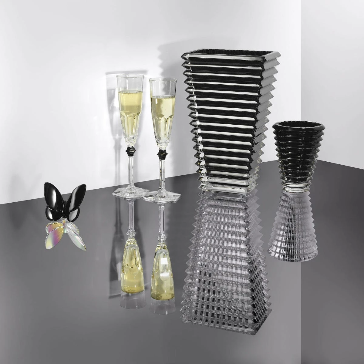 Black is the new clear. Sophisticated, seductive and bold, Baccarat’s new collection Reflections brings a touch of modernity to all contemporary interiors and go perfectly with clear crystal. In a subtle play of contrast, the black Eye vase is the ideal piece to showcase the most beautiful bouquets in every interior decoration style.