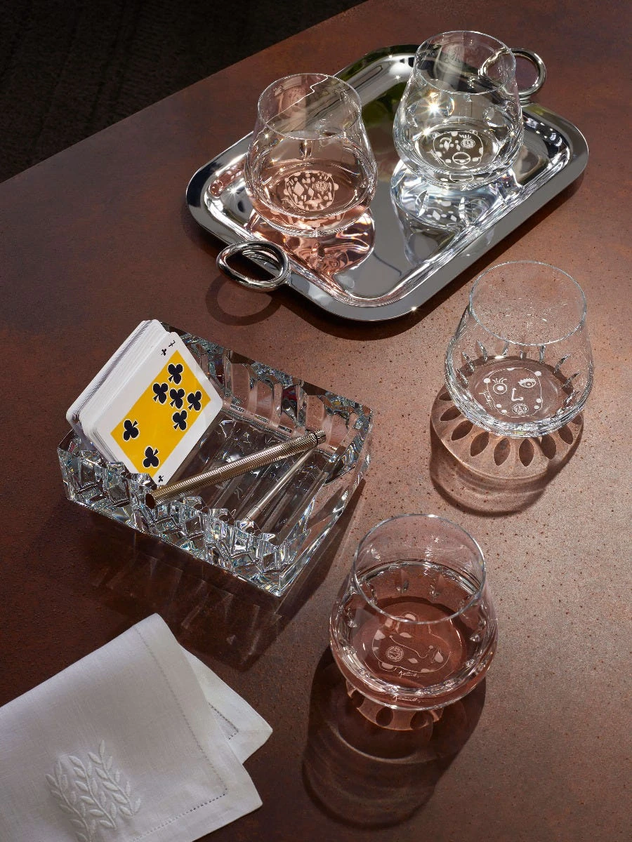 At first glance, these gorgeous tumblers will attract attention to their smooth, rounded shape and bevel cut pattern near the base. When you look at them more closely, however, designer Jaime Hayon’s fantastic creations—engraved in the bottom of each glass—will pop right out! This set of four tumblers features four distinct designs of fantasy creatures, each with its own fun, dreamlike feel.