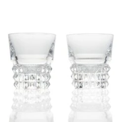 This pair of tumblers features a diamond-shaped surface and inside ruffles, the creative vision of designer Thomas Bastide. The Louxor collection was introduced in 2010 and has been part of elegant home décor ever since. The Louxor aesthetic was inspired by one of Baccarat’s first jewelry collections.
