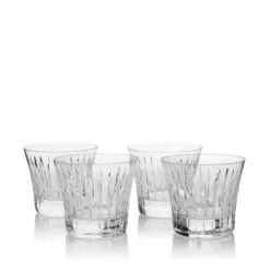 The tumblerโs design features striking vertical lines on the clear crystal, running up the glass from its base. The set of 4 tumblers open up at the top and form a stunning shape. They hold up to 12 ounces.